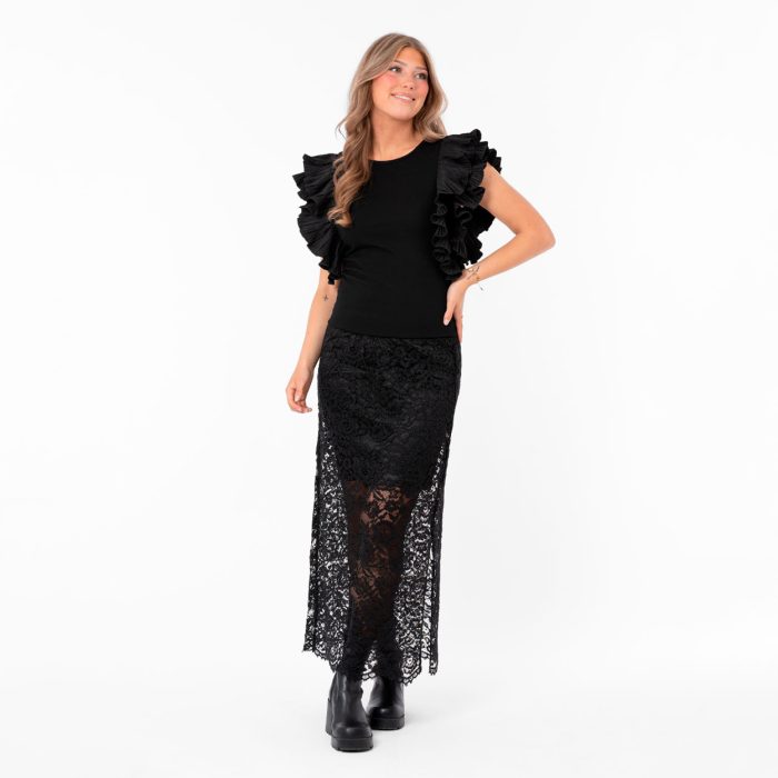 Capri Collectionin hame ihastuttaa yksityiskohdillaan. Capri Collection pitsi hameessa on sivulla halkio. Hameessa on vajaa mittainen vuori hame ja sitä alaspäin on pelkkä pitsi. Upea vaikka juhlaan tai vaikka maihareiden kanssa. Hameessa on kuminauha vyötärö takana ja edessä kaunis silkki nauha.