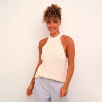 Cream Hami kaunis neuletoppi on joustava ja helposti yhdisteltävä. Malli on suora. Topissa on takana kaksi kaunista kiinntitys nappia. Topissa on hieman kaulusta.
