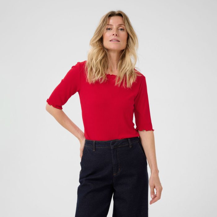 Cream naisten ribbi t-paita on monipuolinen ja tyylikäs vaatekappale, joka sopii moneen eri tilaisuuteen ja tyyliin. Ribbineuloksella valmistettu t-paita on tunnettu mukavuudestaan ja joustavuudestaan, mikä tekee siitä erinomaisen valinnan arkipukeutumiseen.
