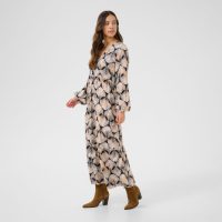 Cream Tiah pitkä kuviollinen mekko on täydellinen valinta arkeen. Se on mukava, monipuolinen ja tyylikäs, ja se tarjoaa lukuisia mahdollisuuksia luoda erilaisia asukokonaisuuksia. Yhdistä ruskea mokkatakin, neuleen tai neuleliivin kanssa.
