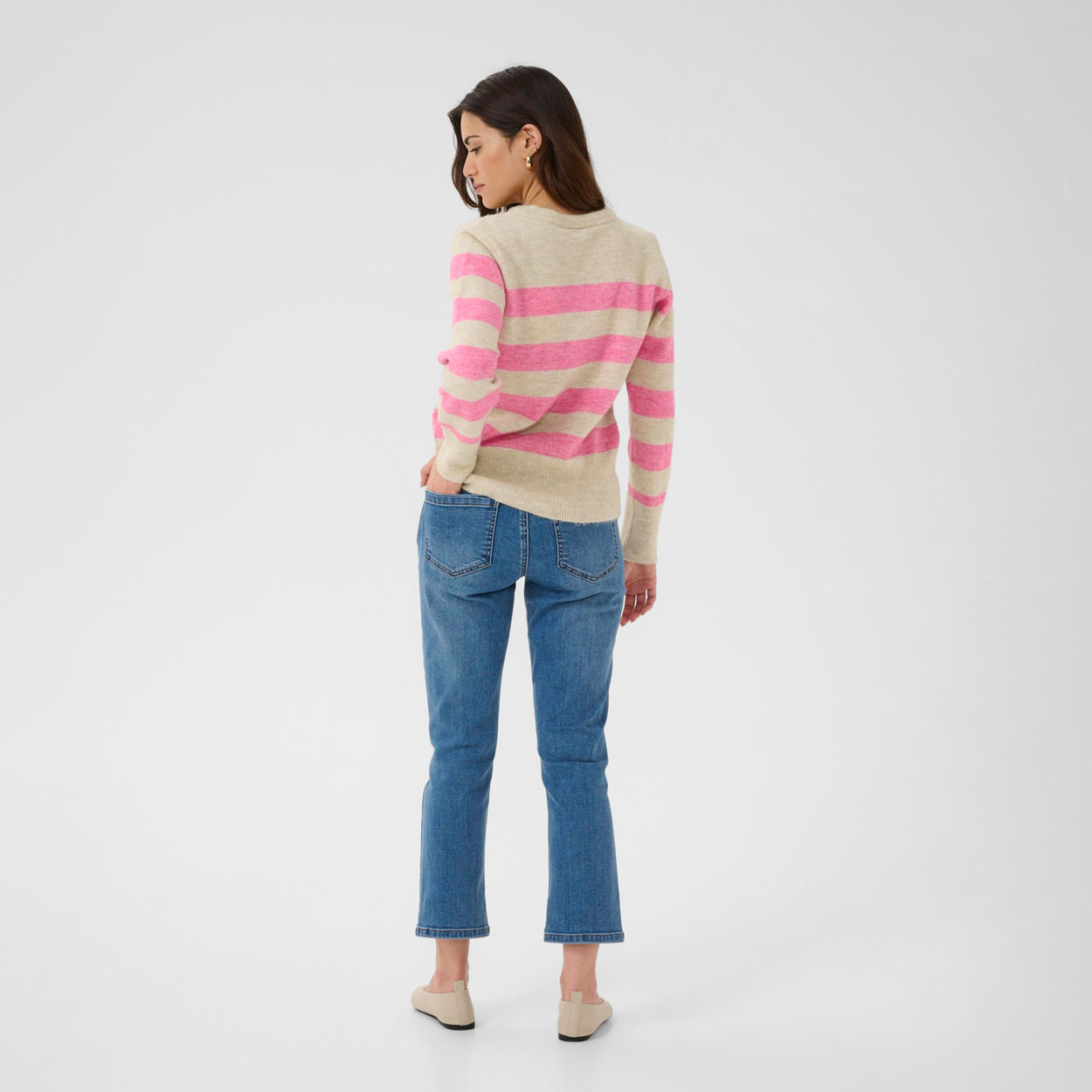 KAFFE Niel neulepaita, pinkki/beige raita
