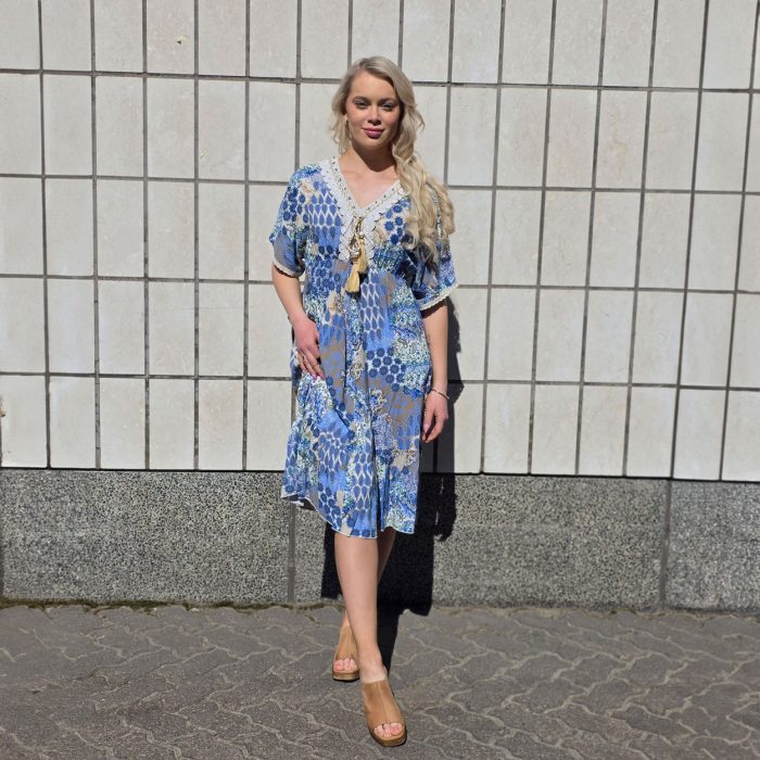M.a.p.p Jeans Alicante upea kuviollinen mekko. M.a.p.p Jeans mekossa on kaunis pitsi kaulus ja hihoissa koriste pitsi. Mekon helmassa on salsa.