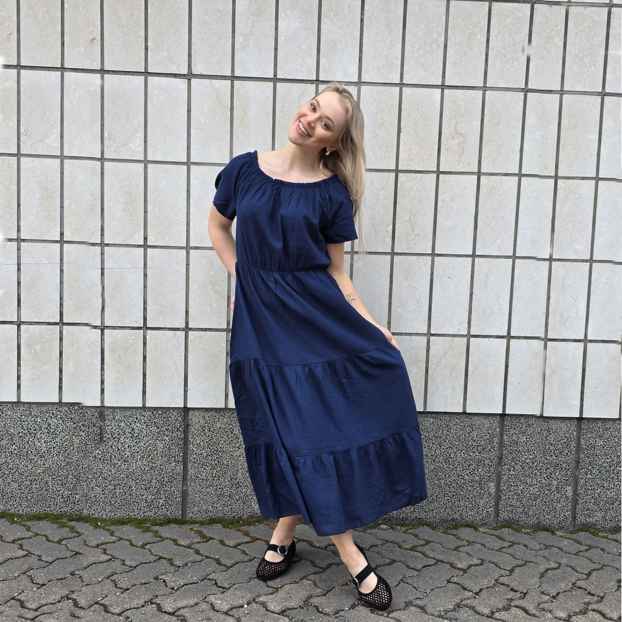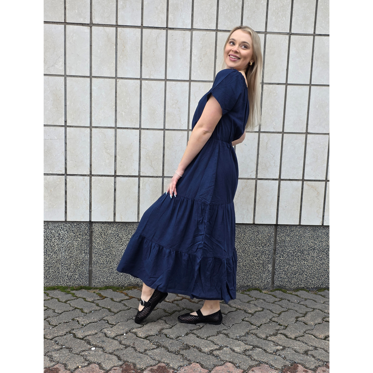 M.a.p.p jeans Vicky on upea viskoosi /pellava mekko kesään. M.a.p.p Jeans mekossa on myös kuminauha kaula-aukko, joka lisää mukavuutta ja monipuolisuutta. Tämä yksityiskohta mahdollistaa mekon käytön eri tavoin. Voit esimerkiksi laskea kaula-aukon alas olkapäille saadaksesi rennomman ilmeen tai pitää sen ylhäällä muodollisempaa tyyliä varten.