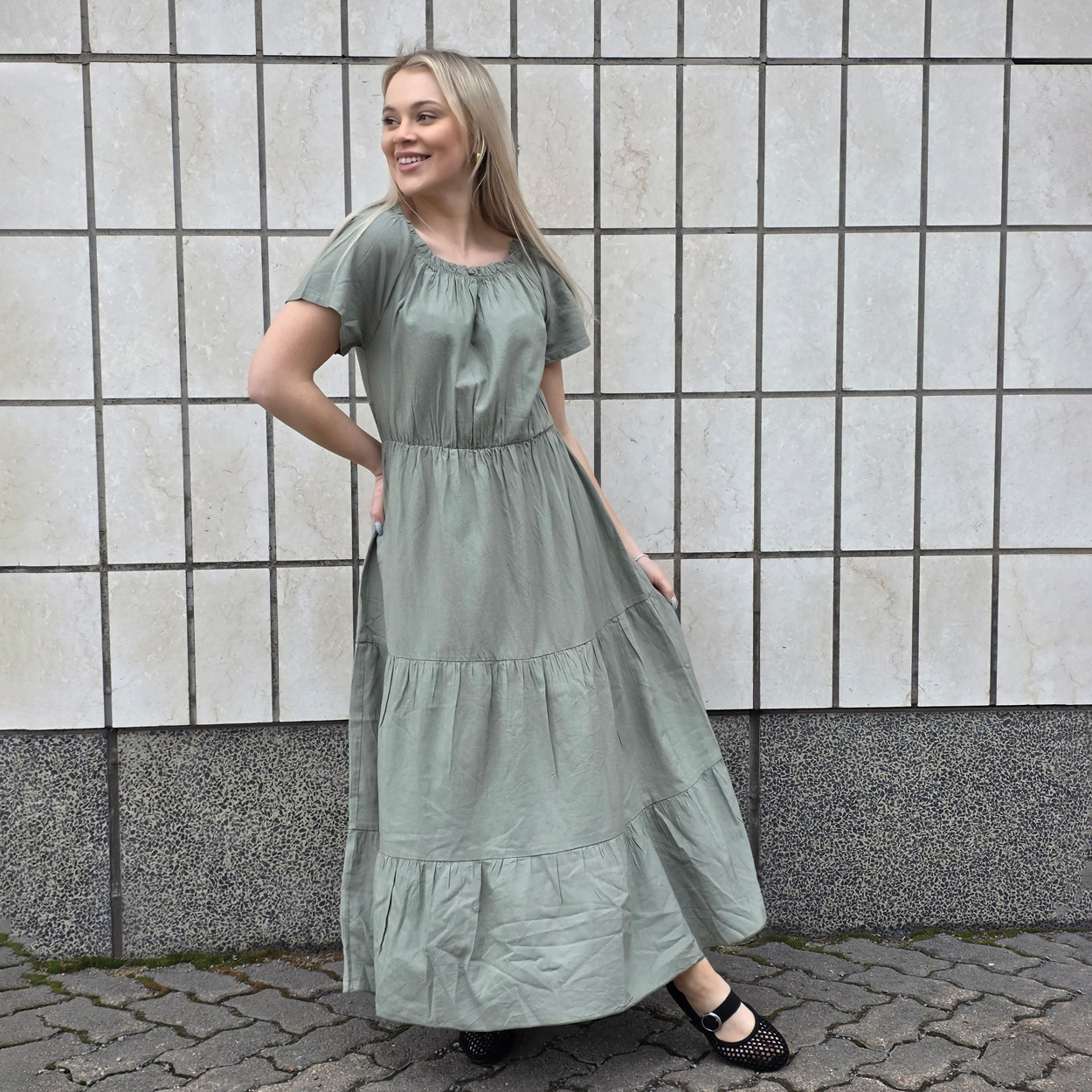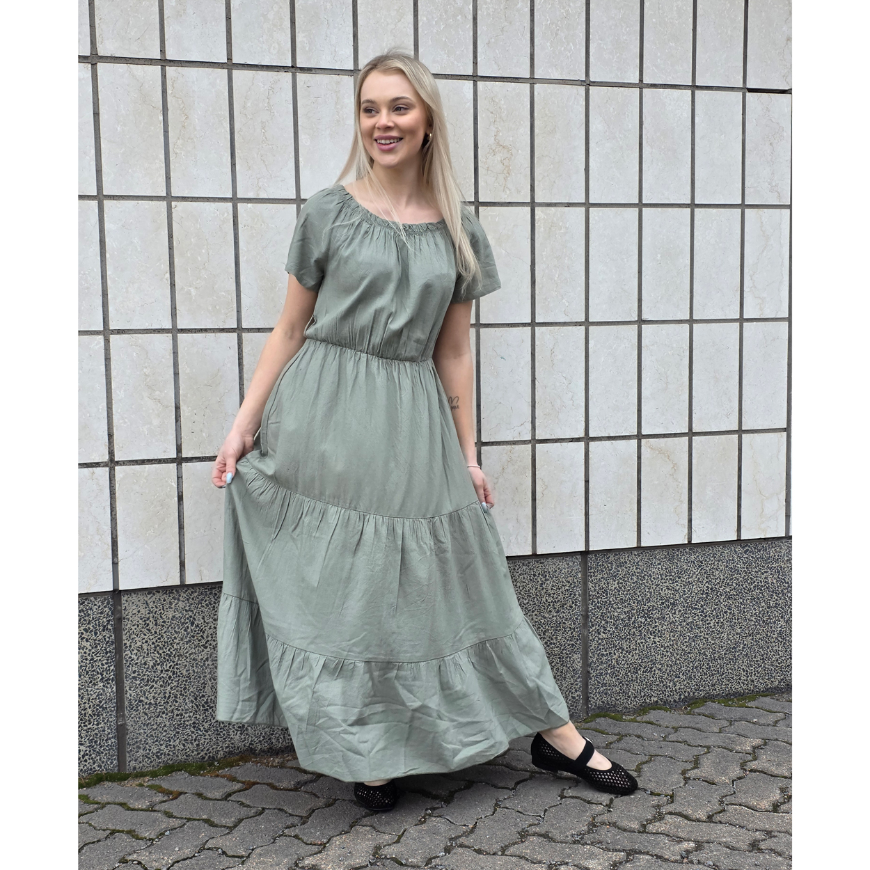 M.a.p.p jeans Vicky on upea viskoosi /pellava mekko kesään. M.a.p.p Jeans mekossa on myös kuminauha kaula-aukko, joka lisää mukavuutta ja monipuolisuutta. Tämä yksityiskohta mahdollistaa mekon käytön eri tavoin. Voit esimerkiksi laskea kaula-aukon alas olkapäille saadaksesi rennomman ilmeen tai pitää sen ylhäällä muodollisempaa tyyliä varten.