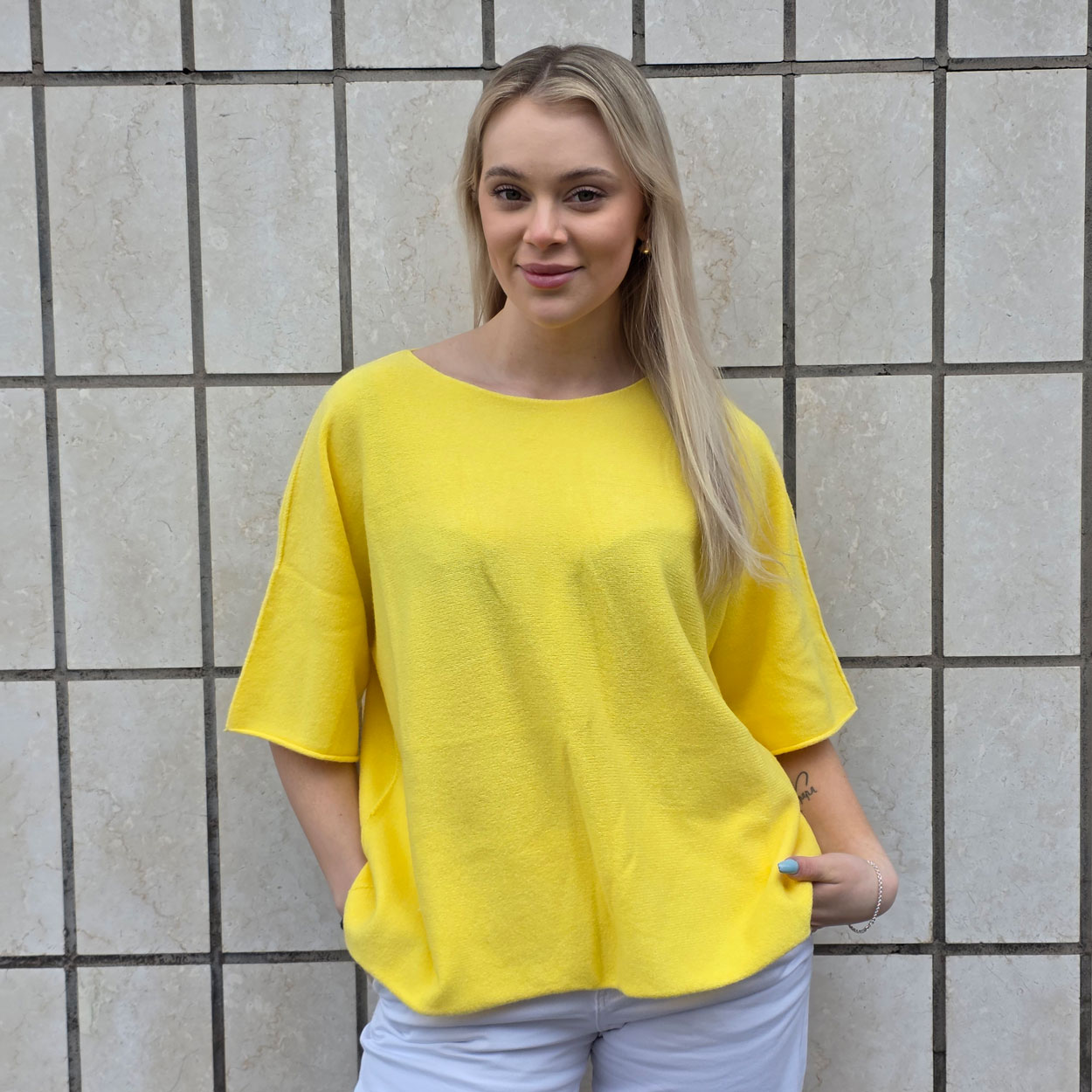 MARTA DU CHÂTEAUN Sia neule on kauniisti laskeutuva ja ihana päällä. Sia neule on yhdenkoon mitoituksella, mikä tarkoittaa, että se on suunniteltu sopimaan monenlaisille vartalotyypeille. Tämä tekee siitä kätevän valinnan, kun etsit jotain helppoa ja monikäyttöistä. Yhdenkoon mitoitus tuo vaivattomuutta pukeutumiseen ja varmistaa, että tunnet olosi mukavaksi ja itsevarmaksi.