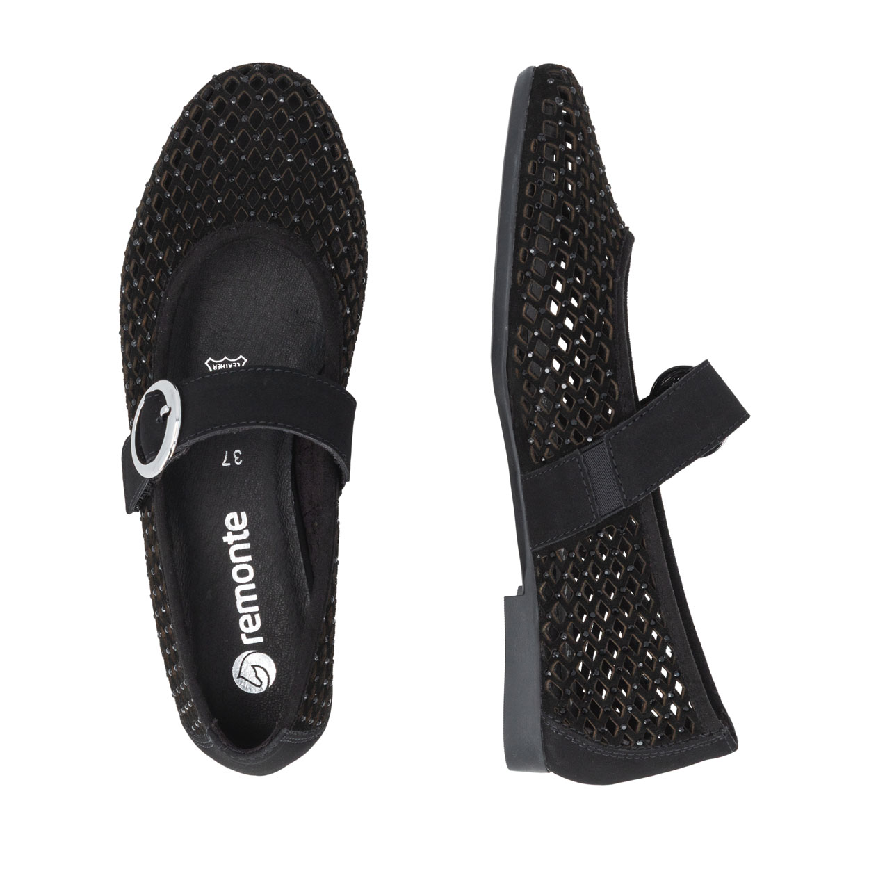 Remonte by Rieker naisten tyylikäs loafer tyylinen kävelykenkä. Rieker kengässä on tarra remmi. Kengässä on pehmeä nahka pohjallinen. Upea mekko kenkä. Kenkä on reijitetty ja siinä on mustia kiiltäviä koristeita kangas.