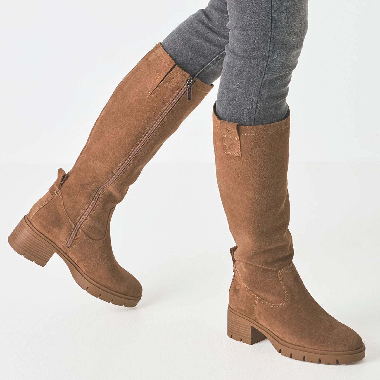 Tamaris upea saapas matalalla tolppa kannalla. Tamaris saapas on tyylikäs niin mekkojen, kuin housujen kanssa. Saappaassa on pehmeä TOUCH-IT sisäpohjallinen.